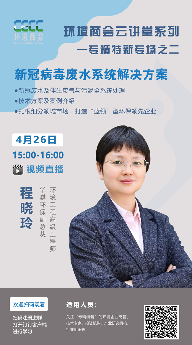 預(yù)告:4月26日《新型冠狀病毒廢水系統(tǒng)解決方案》環(huán)境商會(huì)云講堂開講